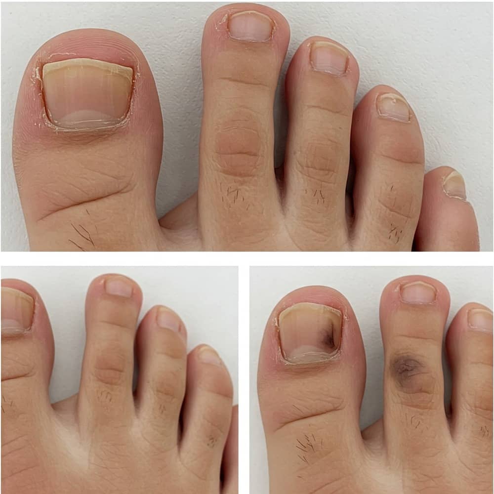 - Fortykkede negle: Særligt på anden tå på grund af konstant pres.